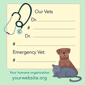 Pictured is a fridge magnet I created for a humane organization I worked for, included in both a donor and cold mailing. While pet parents likely have this information in their phones, others such as pet sitters, firefighters, and neighbors may not. In case of emergency, having this information easily accessible could save a pet’s life.