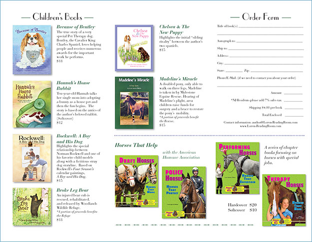 There are plenty of ways to promote yourself as an author, and here’s another one – a brochure. Shown here is a tri-fold brochure which features a selection of animal books that a well-known local author,